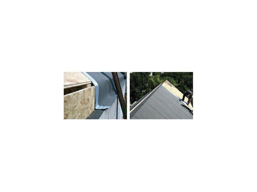 - Úprava horního povrchu pásu: Ochranné a dekorativní břidličné šupiny v barvě červené. Podélný okraj pásu v šíři 70-100 mm bez posypu, krytý polymerní folií v šíři 120 mm