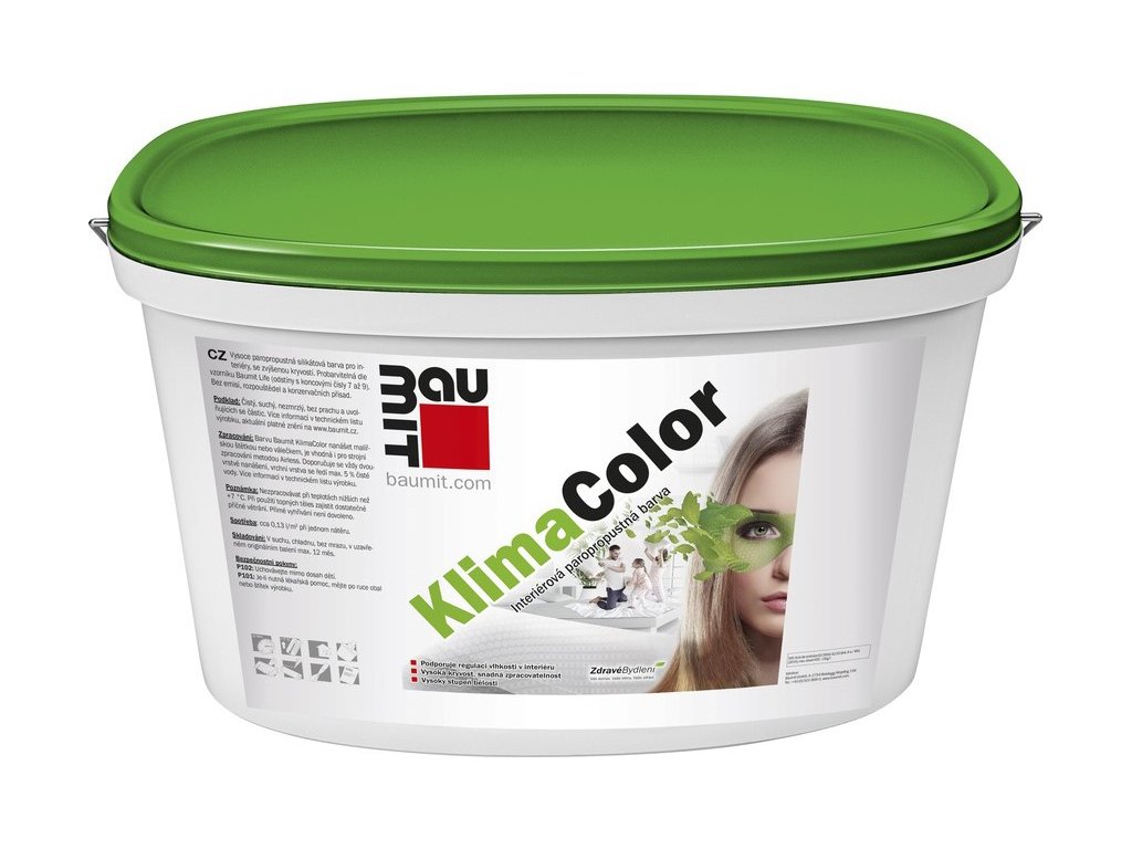 Kvalitní silikátový nátěr BAUMIT KlimaColor se zvýšenou kryvostí a bělostí se používá k zušlechtění povrchu stěn a stropů v interiéru. Jedná se o druh organicky pojené barvy pro bezprostřední zpracování v exteriéru. Skládá se z minerální přísady, organického pojiva, zušlechťující přísady, barevných pigmentů a vody.