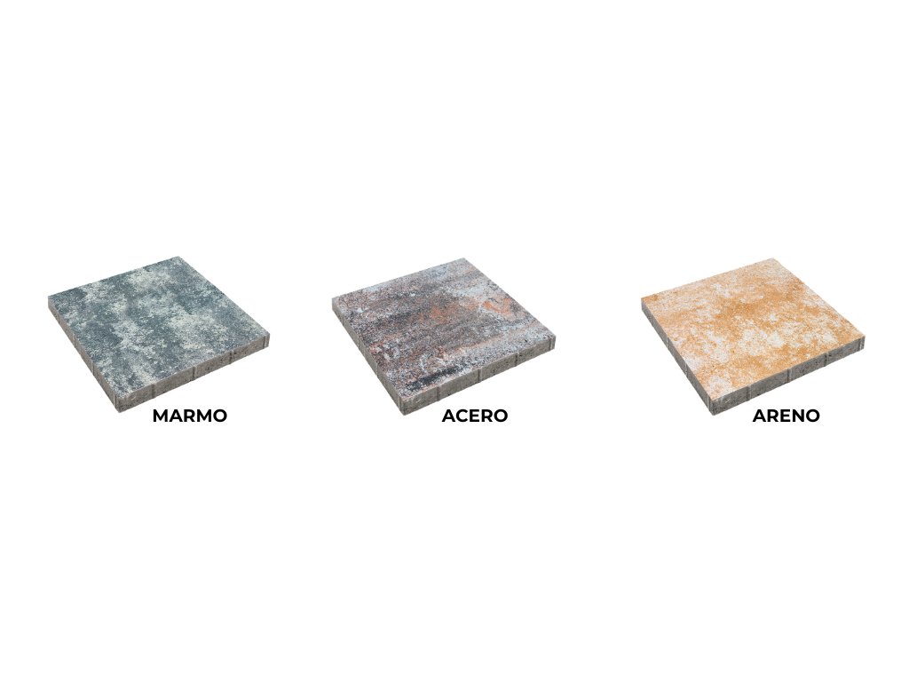 Plošná betonová dlažba DITON GENEVA je ideálním řešením pro elegantní a funkční venkovní plochy. Formát 50 × 50 cm a jemně strukturovaný povrch vytvářejí moderní vzhled, který působí decentně a přirozeně zapadá do okolního prostředí. Barevné provedení v colormix odstínech Marmo, Areno a Acero dodává každé ploše osobitý charakter a umožňuje sladit dlažbu s architekturou domu i zahrady.