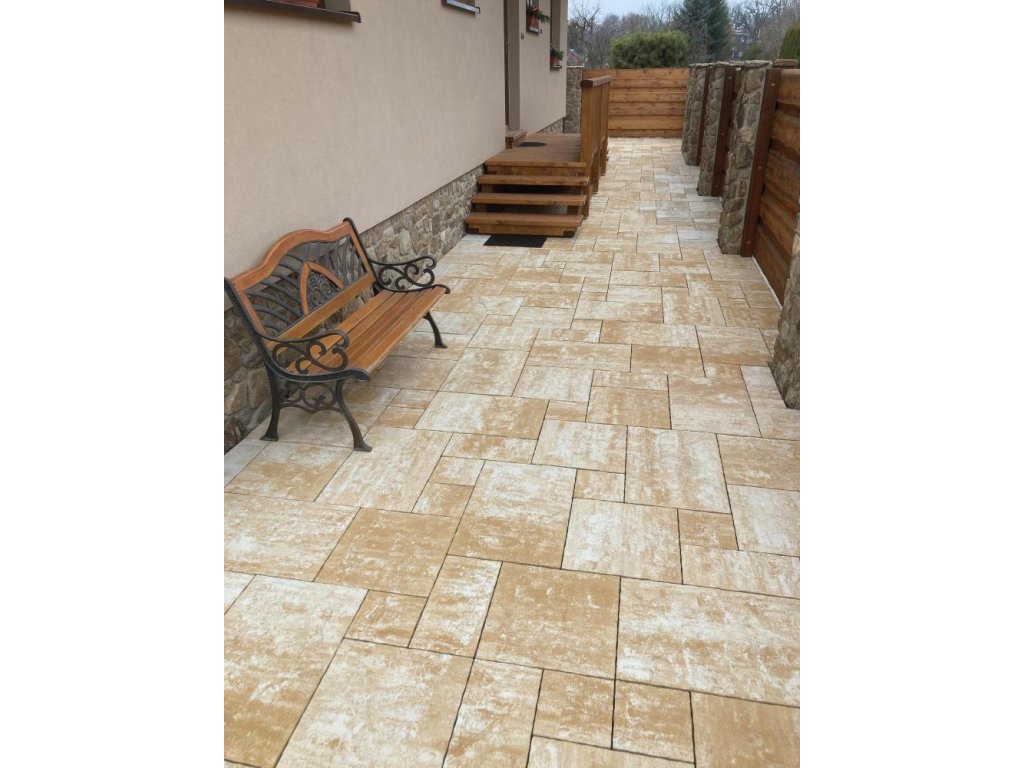 Díky výšce 60 mm je dlažba vhodná pro běžné pochůzné plochy (chodníky, terasy, zahradní cesty), ale i pro lehce zatěžované příjezdové zóny – např. ke garáži nebo pod parkovací stání. Povrch s jemnou strukturou zajišťuje bezpečný pohyb i za vlhka, takže se hodí také do okolí bazénu nebo vířivky.