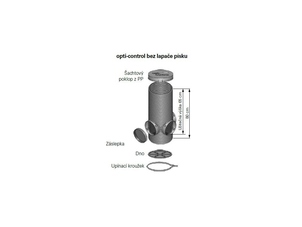 Drenážní revizní šachta OPTI-CONTROL je vyrobená z velmi odolného neměkčeného PVC a slouží pro spolehlivý a účinný sběr i odvod vody z ploch rodinných domů, chalup, chat, budov, stavebních pozemků, sportovních areálů a inženýrských sítí. Dále ji lze využít v zahradnictví, v zemědělství a také při krajinných a pozemkových úpravách. Zajišťuje volný přístup k drenážnímu potrubí a chrání budovu před poškozením sklepních částí nebo promáčením základové desky. Poskytuje vysokou mechanickou a chemickou odolnost, vysokou pevnost v tlaku, možnost vysokotlakého čištění a revize celého drenážního systému pomocí kamery, snadnou instalaci a dlouhou životnost. Ve spodní části šachty se nachází dvojité dno sloužící pro zvýšení stability a zajištění proti vztlaku spodní vody, které lze vyplnit betonem, pískem nebo štěrkem a také tři hrdla (vtoky a odtoky) o vnějších průměrech 200 mm pro napojení drenážních trubek OPTI-DRÄN nebo flexibilních drenážních trubek, případně také kanalizačních trubek KG. Všechna hrdla jsou navíc vybavena zátkou. Horní část šachty je vybavena odnímatelným plastovým pochozím poklopem, do které je možné v případě potřeby prodloužení instalovat drenážní šachtovou rouru s vnějším průměrem 315 mm, na níž lze následně nasadit poklop.