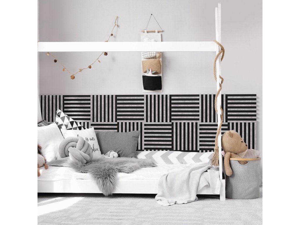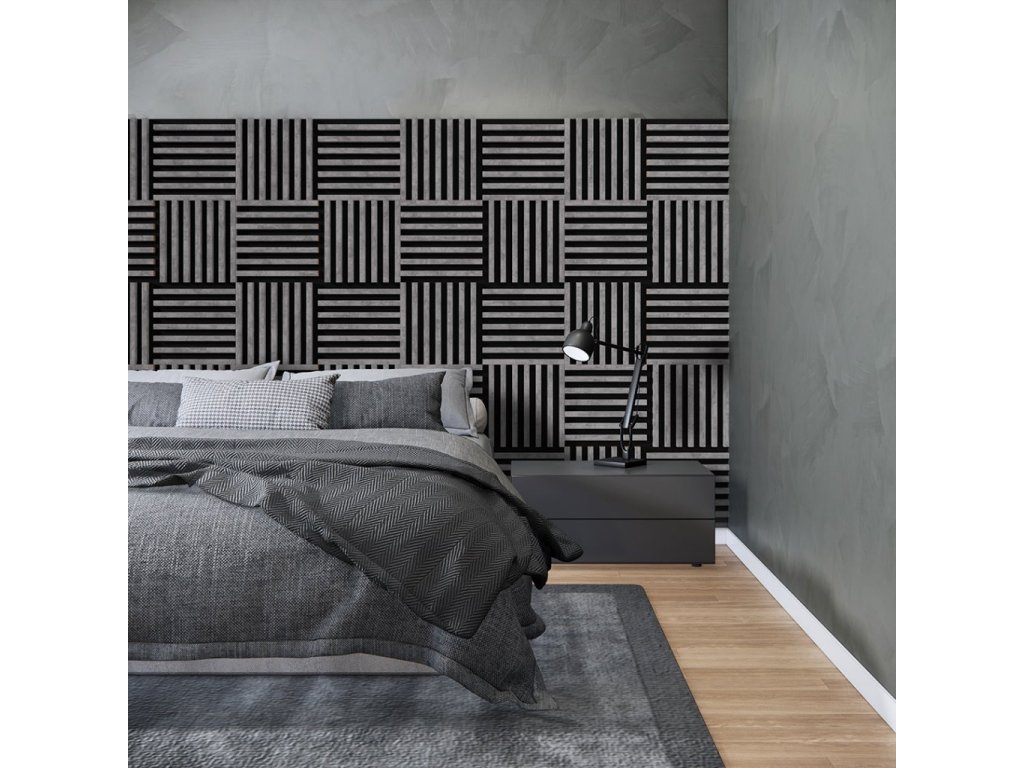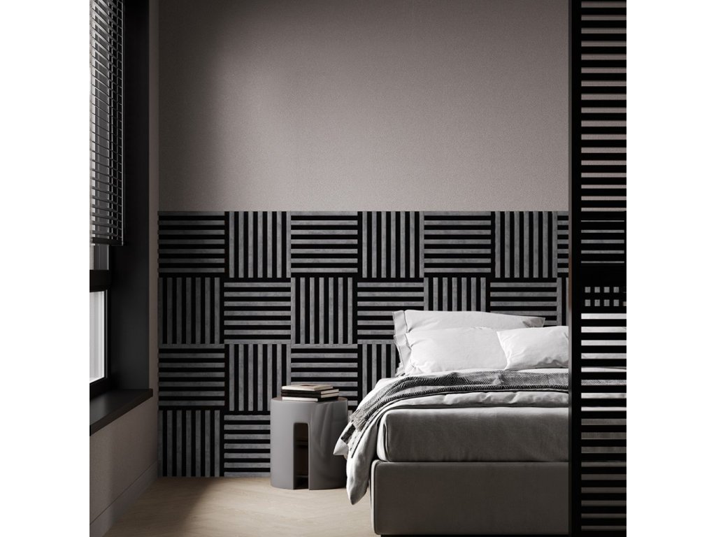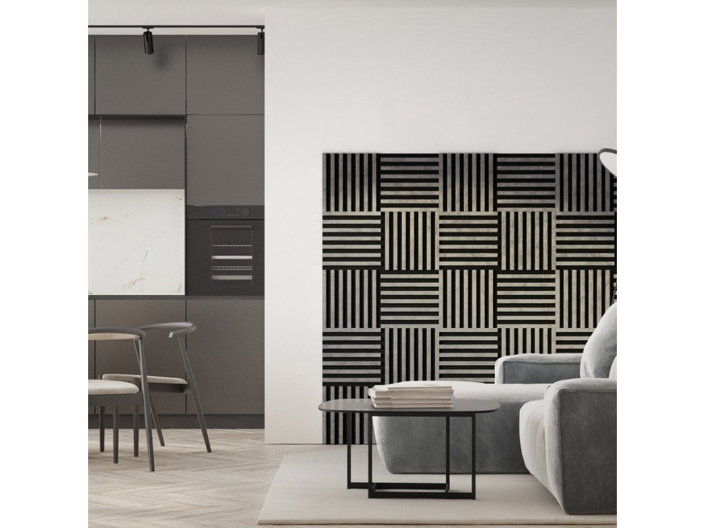 Dřevěná lamela LINEA MINI s černým podkladem 336 x 336 x 30 mm dekor urban