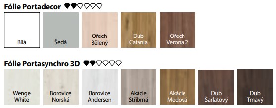 | Povrch: | Fólie Portasynchro 3D, Fólie Portadecor |