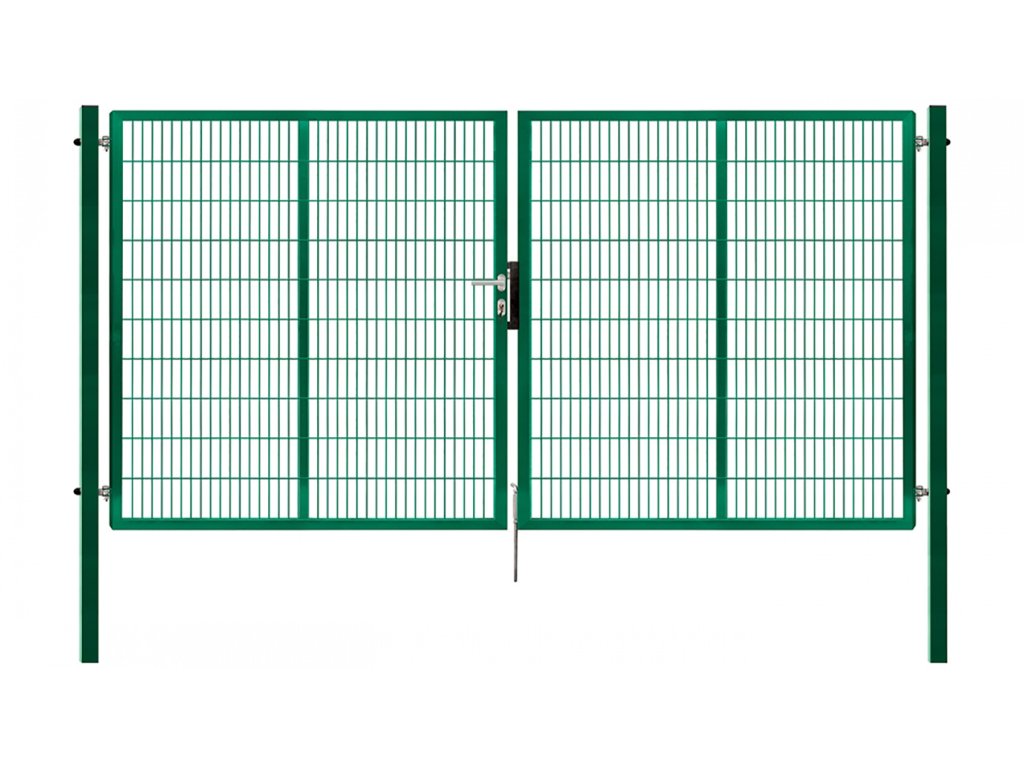 Plotová brána dvoukřídlá PILOFOR SUPER výplň svařovaný panel rovný - 4110 (šířka na střed sloupků) x 1780 mm se zámkem Pilecký