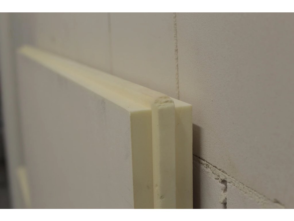 Tyto PIR desky musí být instalovány s přesahem (potiskem) ke stěně, jinak mohou nastat problémy s trvanlivostí a životností fasády!