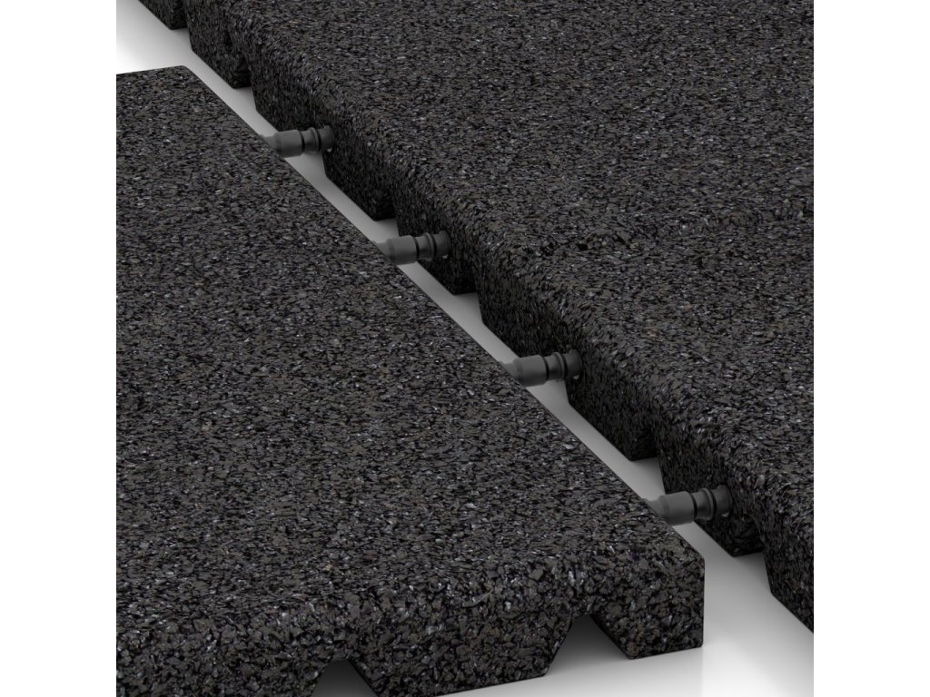V případě montáže gumové dlažby s použitím plastových spojovacích kolíků doporučuje přilepovat dlažbu k podkladu pro zabránění případnému odcizení dlaždic a zajištění kompaktnosti povrchu.