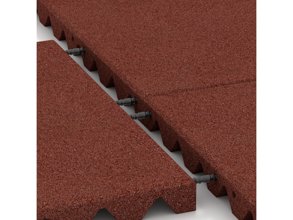 V případě montáže gumové dlažby s použitím plastových spojovacích kolíků doporučuje přilepovat dlažbu k podkladu pro zabránění případnému odcizení dlaždic a zajištění kompaktnosti povrchu.