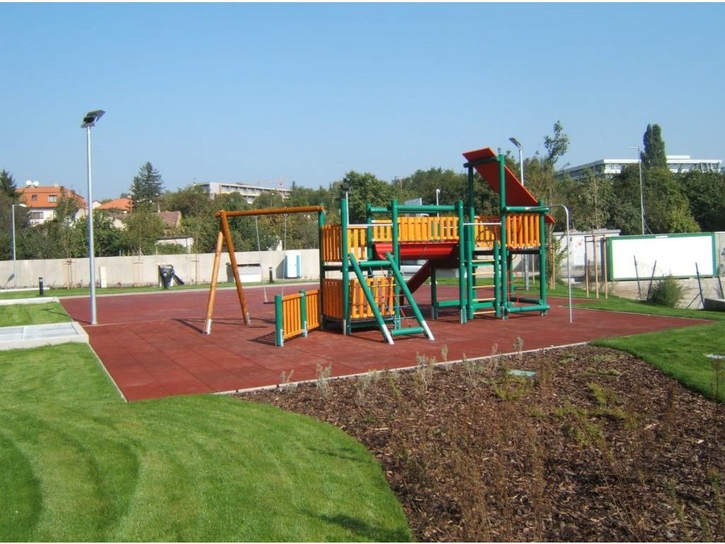 Dlažba byla vyvinuta mimo jiné za účelem snižování rizika vážného zranění způsobeného pádem z herního prvku (houpačky, prolézačky) na minimum a byla testována v souladu s bezpečnostními požadavky dle ČSN EN 1177.