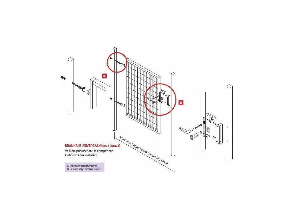 - Součástí branky jsou 2 sloupky včetně stavitelných kloubových závěsů: 60 x 60 mm