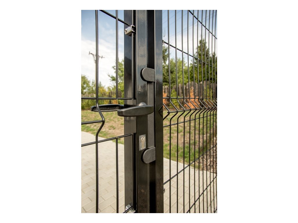 Plotová branka jednokřídlá PILOFOR výplň svařovaný panel - 1094 (šířka na střed sloupků) x 1245 mm se zámkem FAB Pilecký.