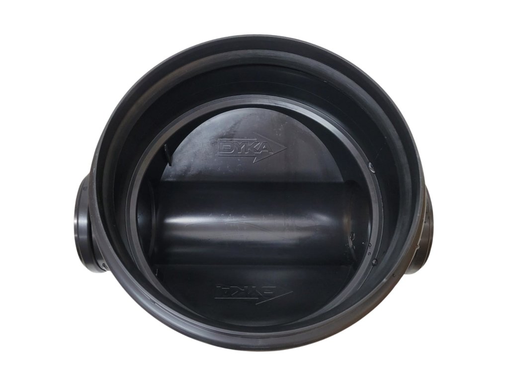 Tento typ přímého šachtového dna nabízí svislé hrdlo s vnějším průměrem 315 mm pro napojení kanalizační šachtové roury a vstupní i výstupní vodorovná hrdla pro napojení kanalizačních trubek KG s vnějším průměrem 125 mm. Svislé hrdlo je navíc vybaveno odnímatelnou zátkou, která může posloužit jako alternativa poklopu šachtového dna anebo kanalizační šachtové roury. Do svislého hrdla šachtového dna stačí napojit šachtovou rouru a na její horní hladkou část instalovat otočenou zátku.