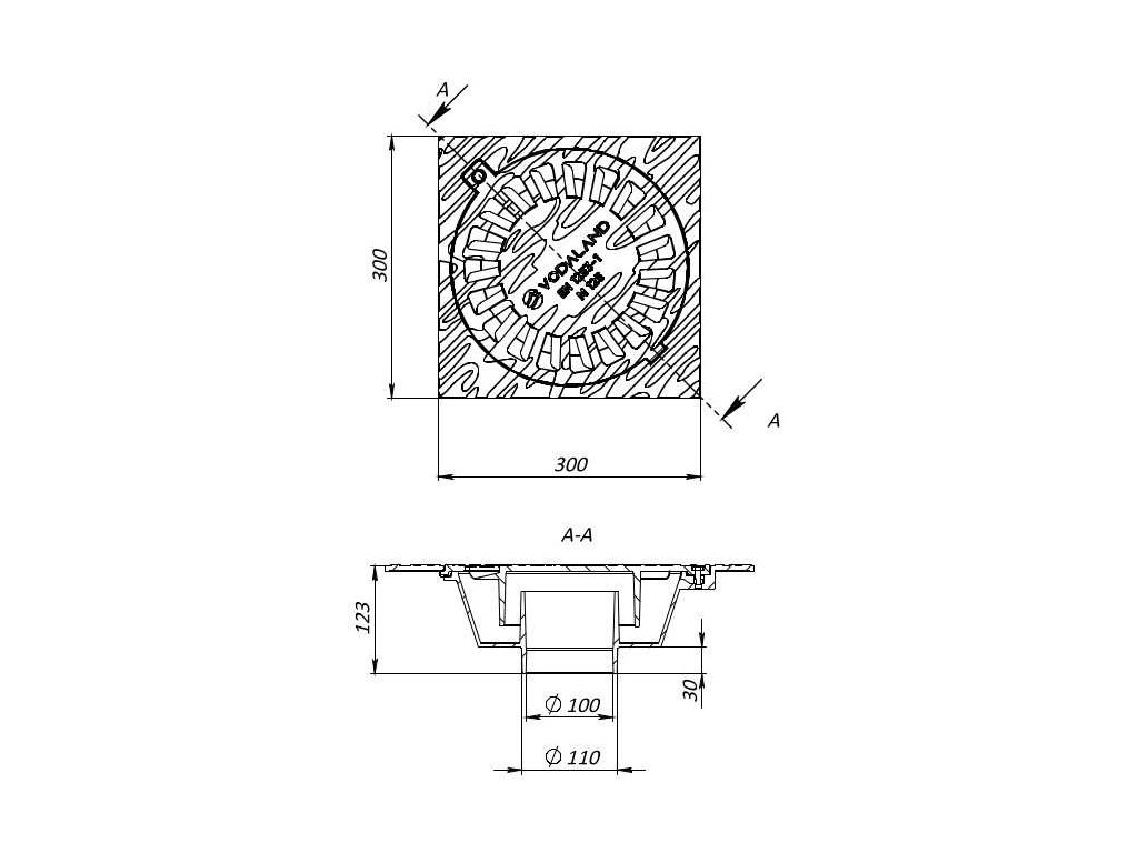 - rozměr vpusti: 300 x 300 mm