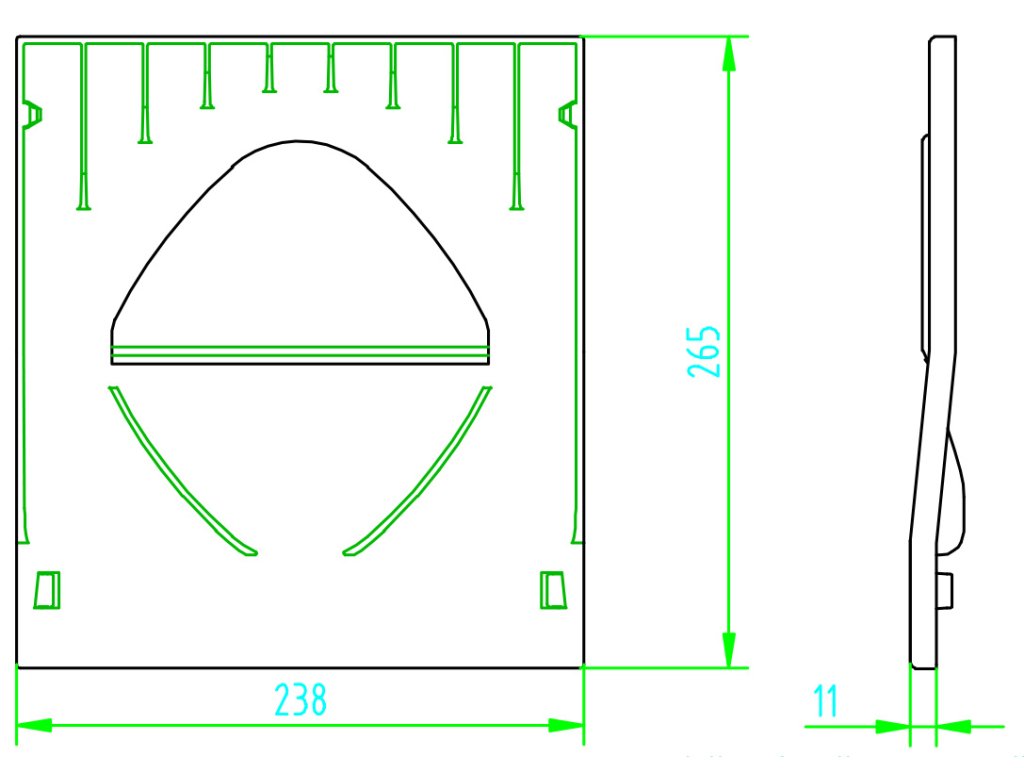 Koncovka pro zakrytí bočních otvorů odvodňovacích plastových žlabů ACO XTRADRAIN X200 s rozměrem 238 x 265 mm
