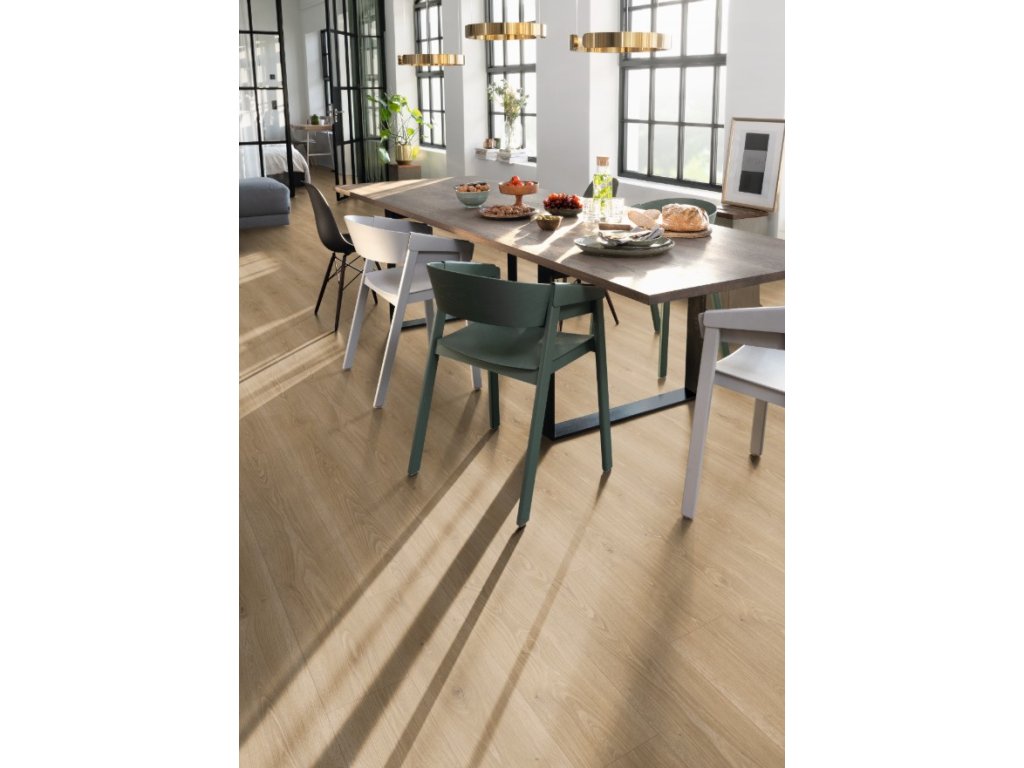 Laminátová podlaha NatureSense Aqua+ Classic díky vodotěsnému systému Aqua CLIC it je všestranným pomocníkem pro vaši domácnost, ať už v koupelně nebo v kuchyni, vodotěsný zaklapávací systém poskytuje spolehlivou až 72 hodinovou voděodolnost a ochranu proti pronikání vlhkosti. Povrch laminátové podlahy je odolný proti opotřebení AC4, UV záření a snadno se čistí. Pro všechny domovní aplikace s intenzivním používáním včetně běžně zátěžového komerčního a veřejného použití. Zdravý domov 100% bez PVC a změkčovadel. Hrany zkosené po celém obvodu zvýrazňují jednotlivé podlahové desky. Ekologicky udržitelná a vhodná pro zdravé bydlení.