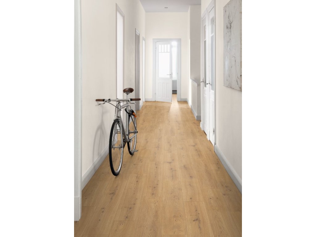 Laminátová podlaha NatureSense Aqua Classic díky vodotěsnému systému Aqua CLIC it je všestranným pomocníkem pro vaši domácnost, ať už v koupelně nebo v kuchyni, vodotěsný zaklapávací systém poskytuje spolehlivou až 24 hodinovou voděodolnost a ochranu proti pronikání vlhkosti. Povrch laminátové podlahy je odolný proti opotřebení AC4, UV záření a snadno se čistí. Pro všechny domovní aplikace s intenzivním používáním včetně běžně zátěžového komerčního a veřejného použití. Zdravý domov 100% bez PVC a změkčovadel. Hrany zkosené po celém obvodu zvýrazňují jednotlivé podlahové desky. Ekologicky udržitelná a vhodná pro zdravé bydlení.