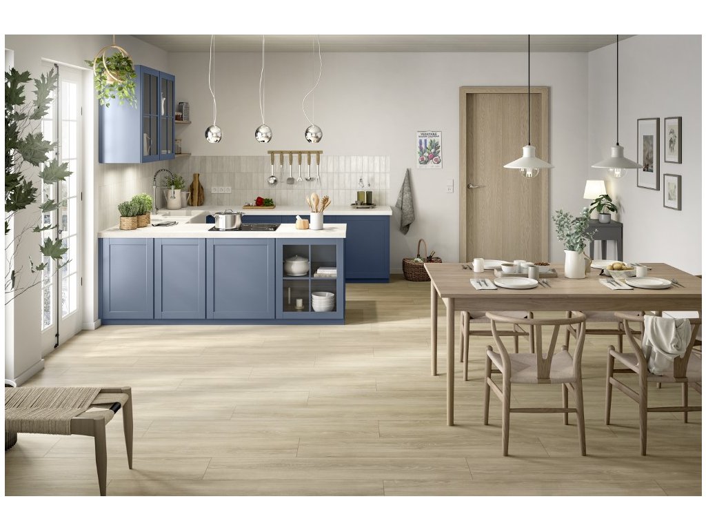 Dub Newport krémový vypadá elegantně a klasicky s krásnou a jemnou strukturou. Bílá podlaha s provápněnými póry je na celé ploše dokonale zvýrazněna použitím světlého nábytku.