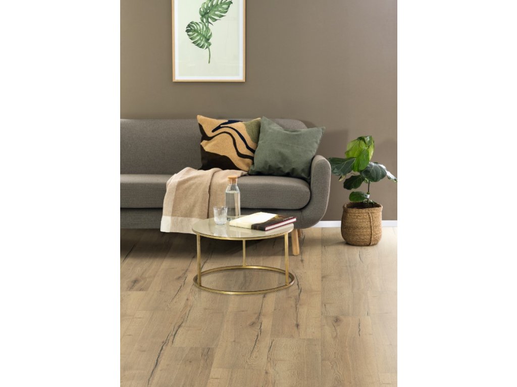 Laminátová podlaha NatureSense Aqua Large díky vodotěsnému systému Aqua CLIC it je všestranným pomocníkem pro vaši domácnost, ať už v koupelně nebo v kuchyni, vodotěsný zaklapávací systém poskytuje spolehlivou až 24 hodinovou voděodolnost a ochranu proti pronikání vlhkosti. Povrch laminátové podlahy je odolný proti opotřebení AC4, UV záření a snadno se čistí. Pro všechny domovní aplikace s intenzivním používáním včetně běžně zátěžového komerčního a veřejného použití. Zdravý domov 100% bez PVC a změkčovadel. Hrany zkosené po celém obvodu zvýrazňují jednotlivé podlahové desky. Ekologicky udržitelná a vhodná pro zdravé bydlení.
