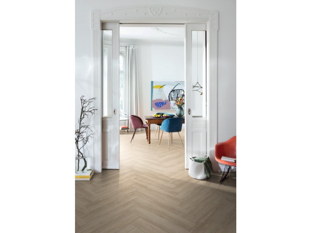 Laminátová podlaha Egger NatureSense Herringbone 8 mm Dub Newport krémový EL2161