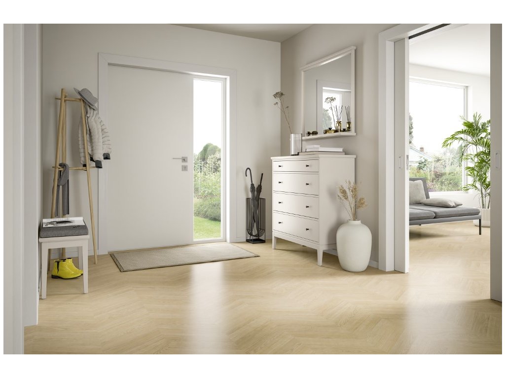 Dub Skanderborg pískový přináší do místnosti klasiku. Kombinují se zde dvě oblíbená témata: Charakter dubu a vzhled rybí kosti. Obě jsou v designu interiérů velmi vyhledávaná. Díky světle hnědé barvě je tento dekor obzvláště univerzální.