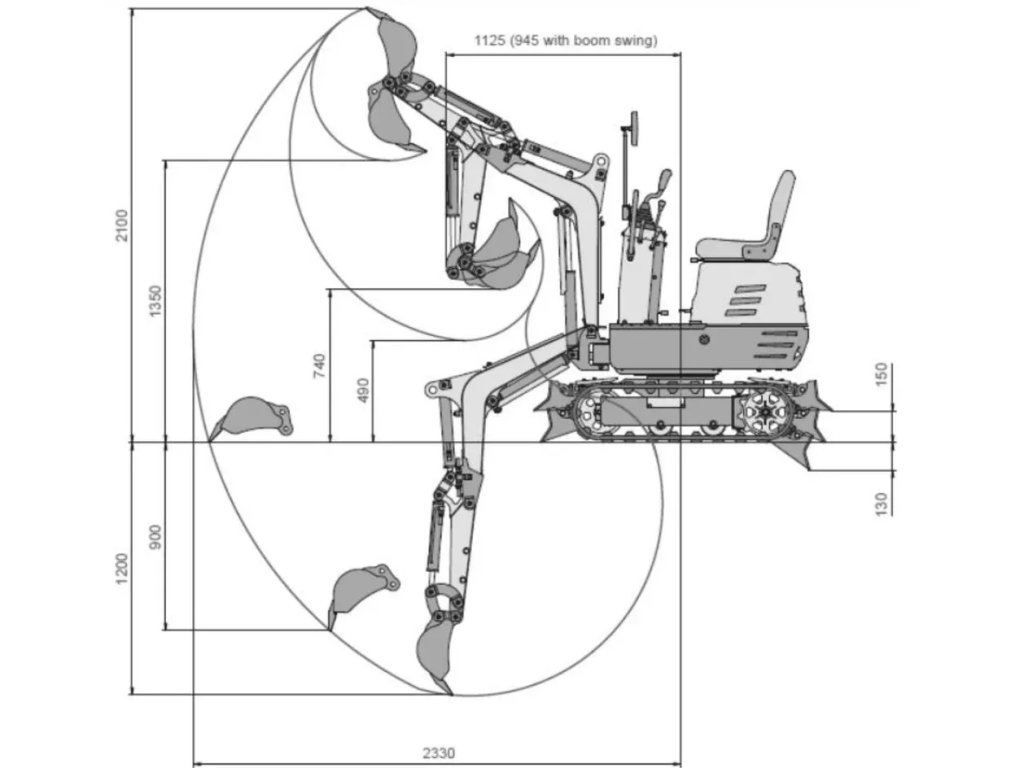 Minibagr LUMAG MB-600 je všestranný, kompaktní a uživatelsky příjemný pomocník pro práci ve stísněných prostorech, kde není dostatek místa pro větší stroje. Úzká konstrukce stroje umožní bezpečně projet úzkými bránami a cestami. Obsahuje LED světlomet, 2 zrcátka a počítadlo motohodin. Rameno lze otáčet v rozsahu až +/-70 °, tudíž se hodí pro výkopové práce kolem budov, např. hydroizolační drenáže. Součástí balení jsou i paletové vidle, radlice, víko radlice a rýpací trny.