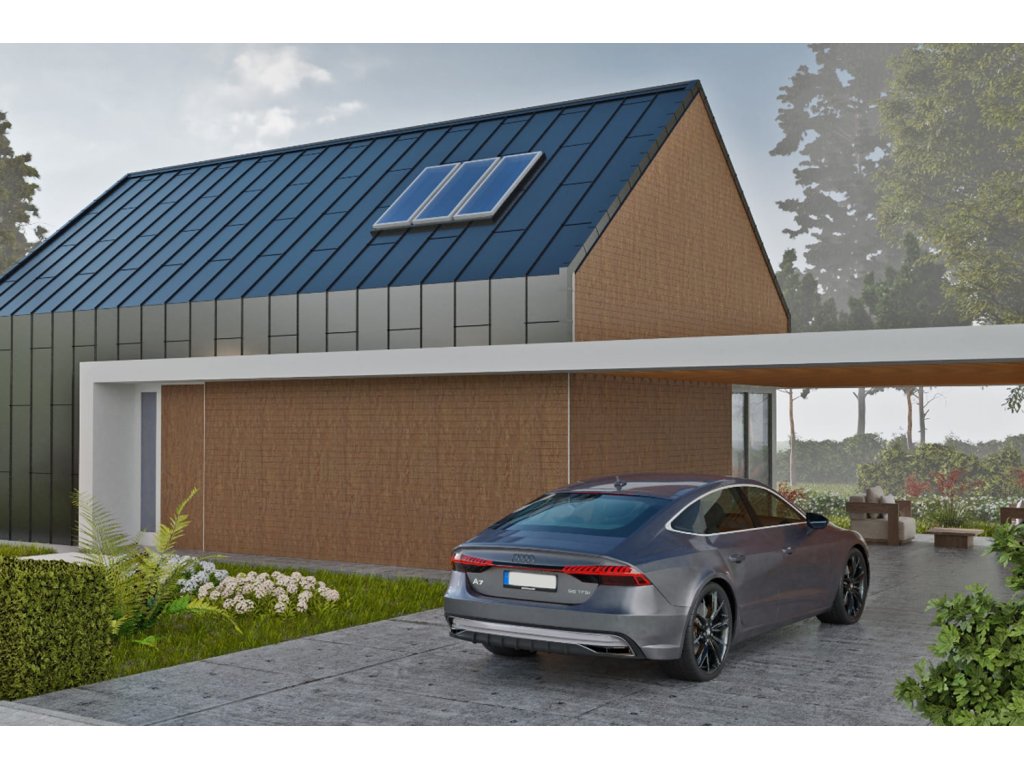 Střešní panel FIT od značky BP2 je moderní modulová plechová krytina, která imituje vzhled klasické falcované střechy, ale díky klik systému umožňuje rychlou a jednoduchou montáž bez potřeby speciálního nářadí. Tento typ krytiny je ideální pro rodinné domy, přístřešky, garáže i moderní novostavby.