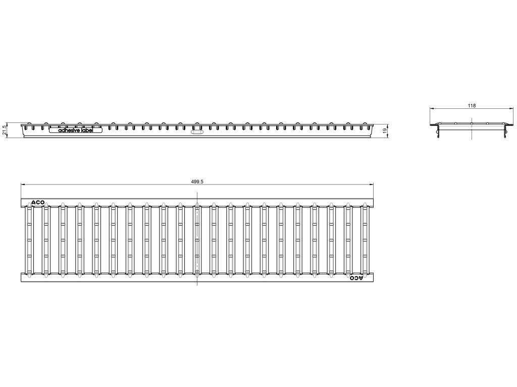 Mříž pochozí A15 pro odvodňovací žlaby ACO SELF pozinkovaná 500 x 118 mm
