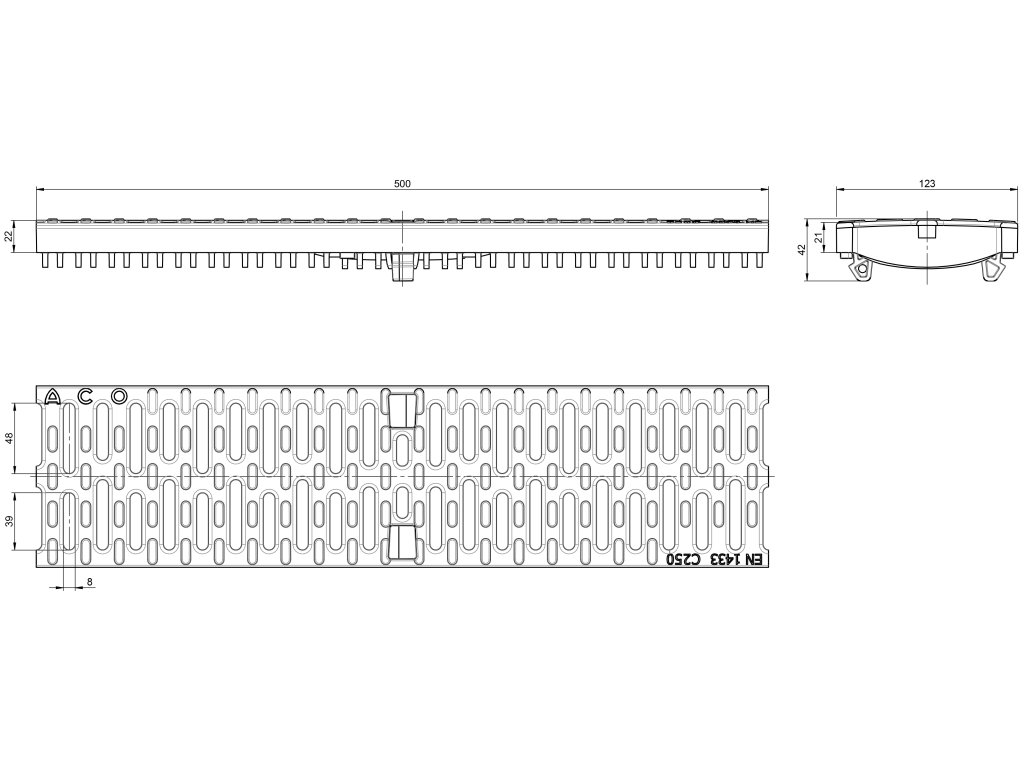 Mříž pojezdová C250 pro odvodňovací žlaby ACO XTRADRAIN X100 kompozitní 500 x 123 mm
