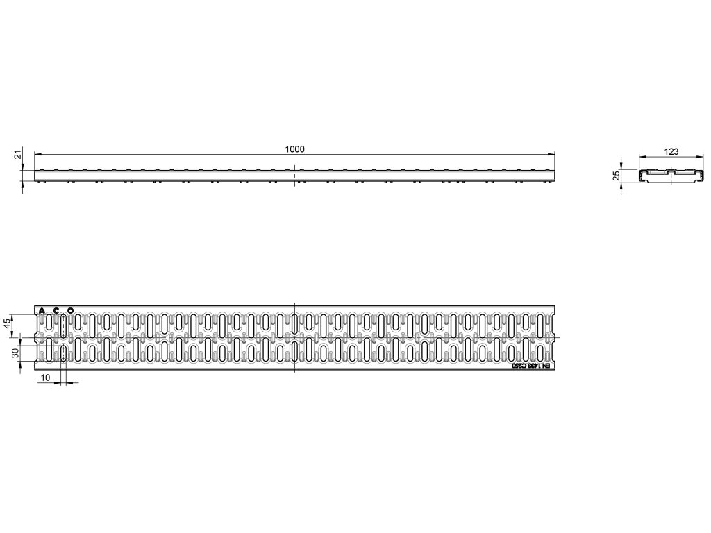 Mříž pojezdová C250 pro odvodňovací žlaby ACO XTRADRAIN X100 pozinkovaná 1000 x 123 mm
