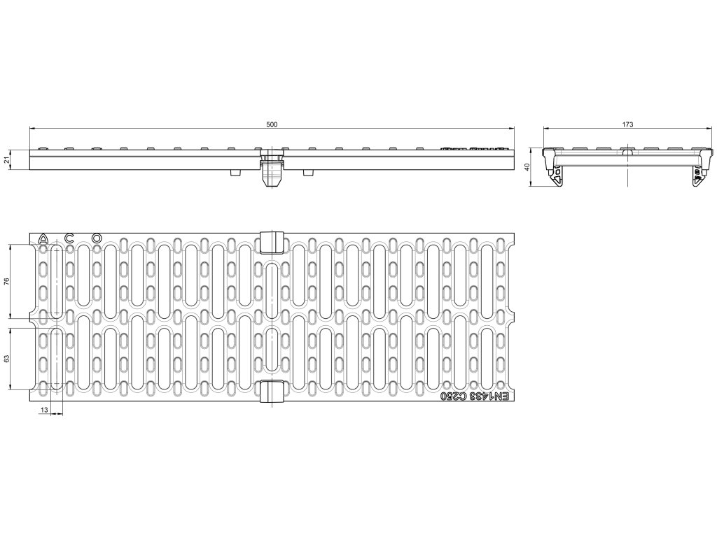 Pojezdová mříž C250 pro odvodňovací žlaby ACO XTRADRAIN X150 litinová 500 x 173 mm