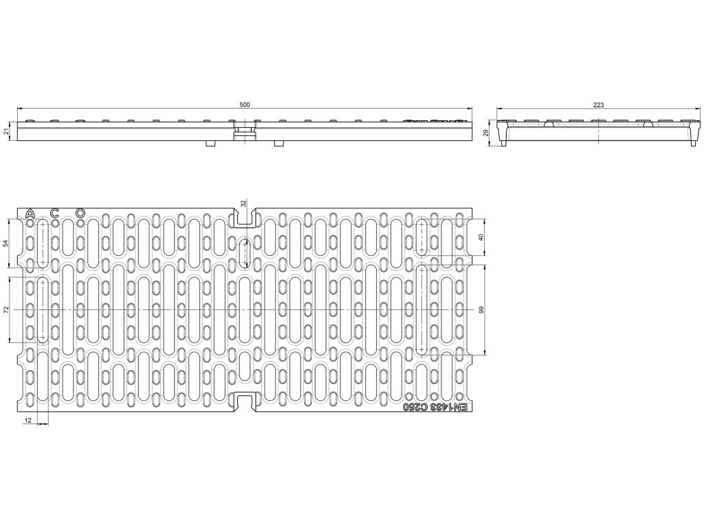 Mříž pojezdová C250 pro odvodňovací žlaby ACO XTRADRAIN X200 litinová 500 x 223 mm