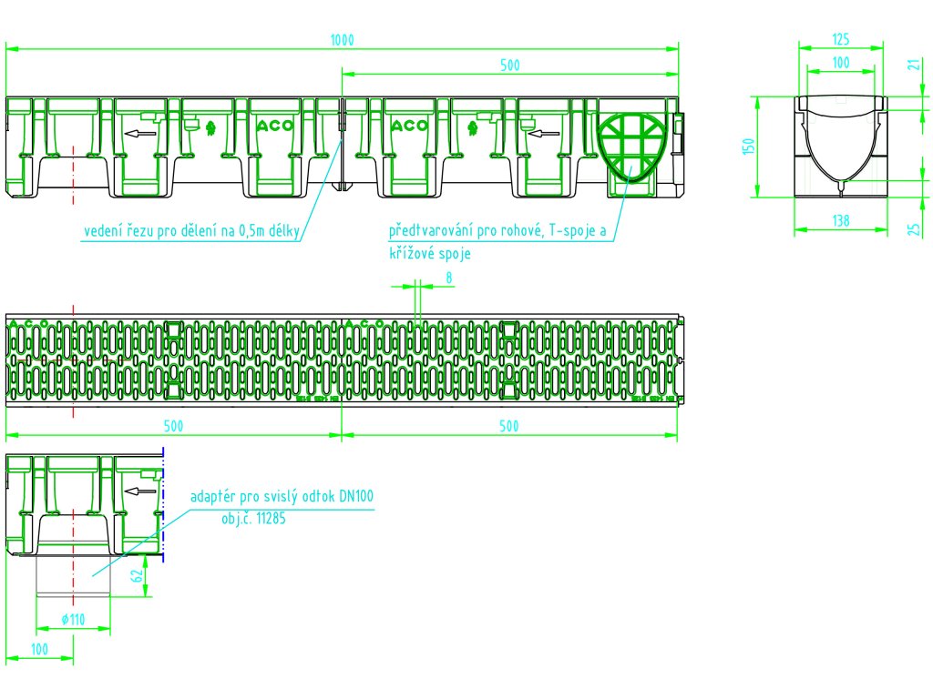 Podrobné technické informace k tomuto plastovému žlabu naleznete v technickém listu a technickém výkresu.