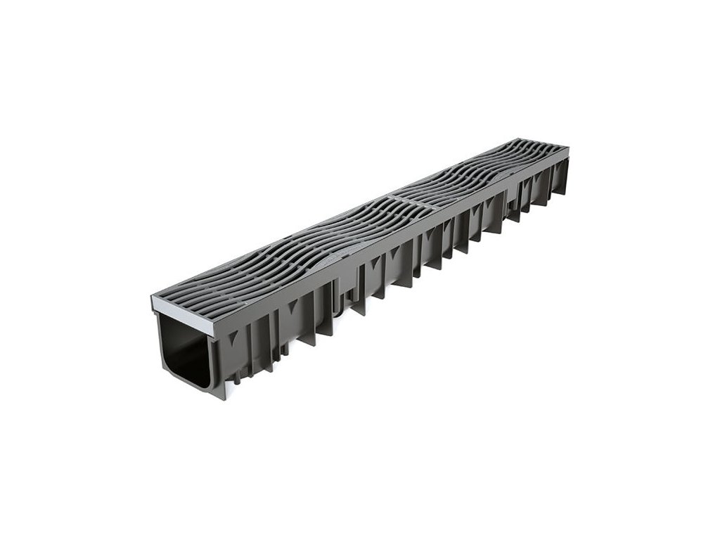 Odvodňovací plastový žlab WAVEDRAIN A15 s plastovou mříží 1000 x 120 x 110 mm