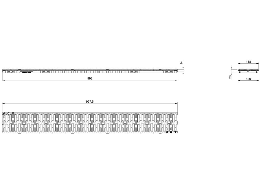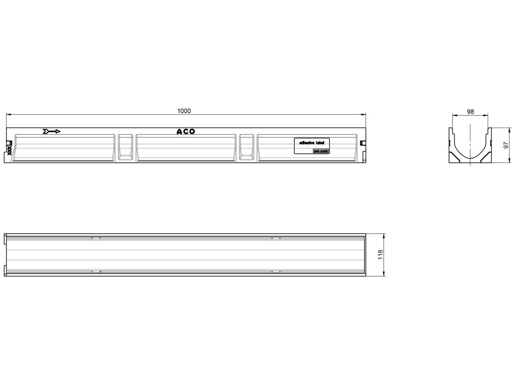 Odvodňovací polymerbetonový žlab ACO EUROSELF A15 s plastovou mříží 1000 x 118 x 104 mm