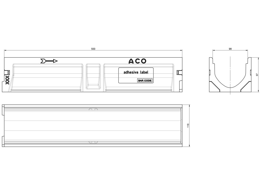 Odvodňovací polymerbetonový žlab ACO EUROSELF A15 s plastovou mříží 500 x 118 x 104 mm