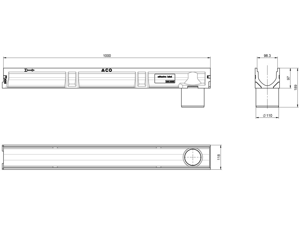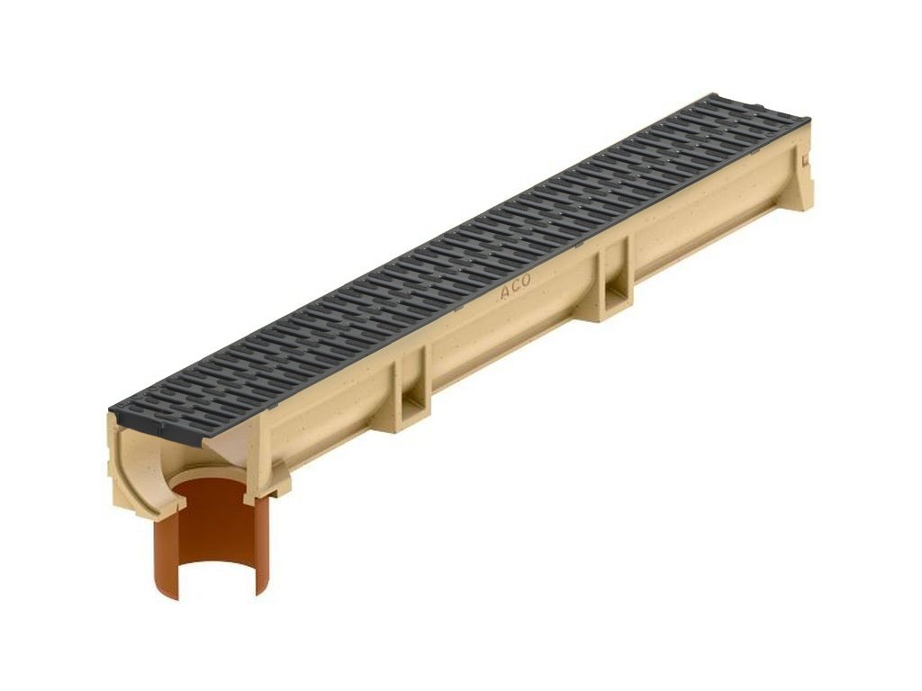 Odvodňovací polymerbetonový žlab ACO EUROSELF A15 s plastovou mříží a odtokem 1000 x 118 x 104 mm