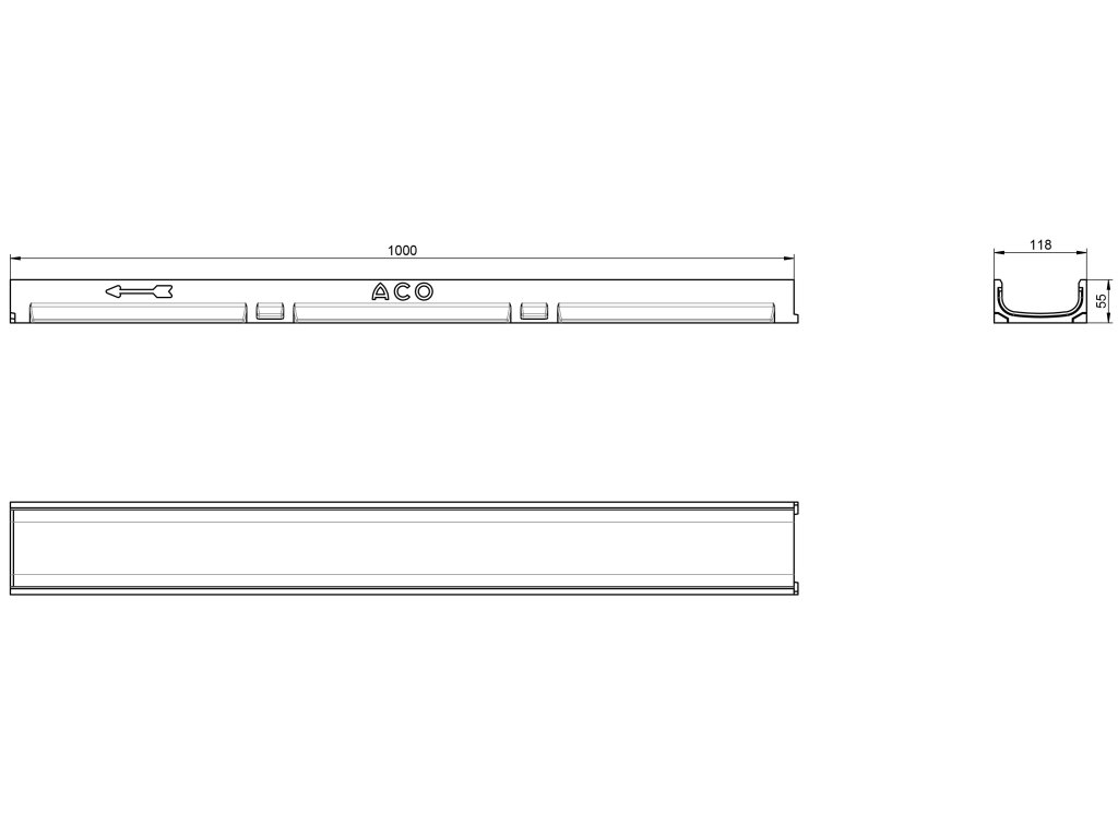 Odvodňovací polymerbetonový žlab ACO EUROSELF MINI A15 s pozinkovanou mříží 1000 x 118 x 58 mm