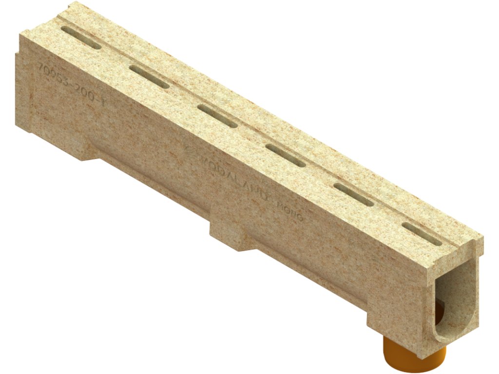 Odvodňovací polymerbetonový žlab VODALAND MONO C250 je vyrobený z vysoce pevné a kvalitní pryskyřice a slouží pro spolehlivý a účinný odvod povrchové vody z parkovišť a vozovek pozemních komunikací pro osobní automobily. Poskytuje vysokou odolnost proti zatížení i opotřebení, voděodolnost, mrazuvzdornost, snadnou instalaci a dlouhou životnost. Zabraňuje samovolnému tvoření kaluží při vydatných deštích a jeho hladký povrch zajišťuje rychlý tok vody. Obsahuje štěrbinové bloky a výztužnou konstrukci. Tento typ žlabu nabízí spodní odtok o vnějším průměru 110 mm.