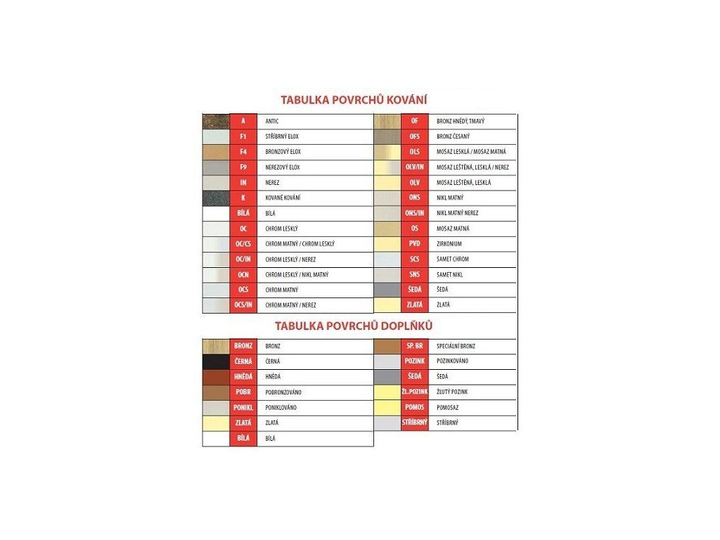 Typ povrchu: F1 stříbrný elox, F4 bronzový elox