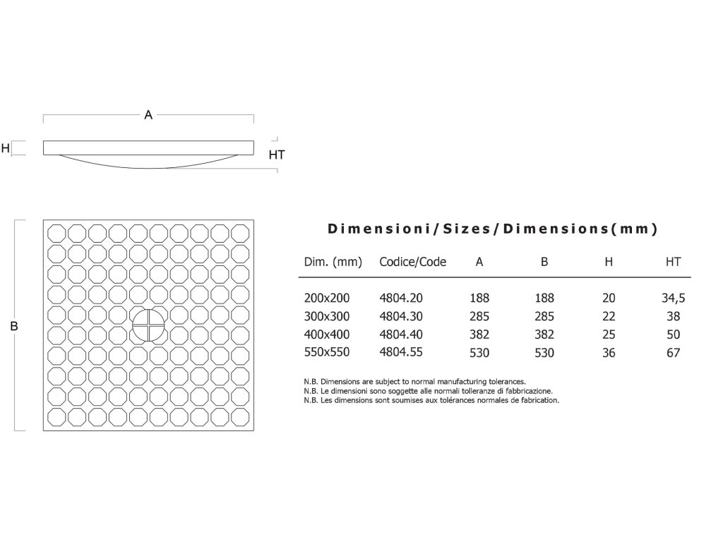 - rozměr poklopu: 188 x 188 mm