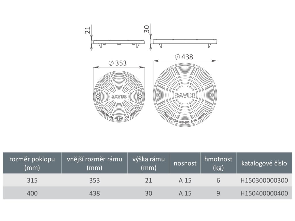 - vnější průměr poklopu: 438 mm