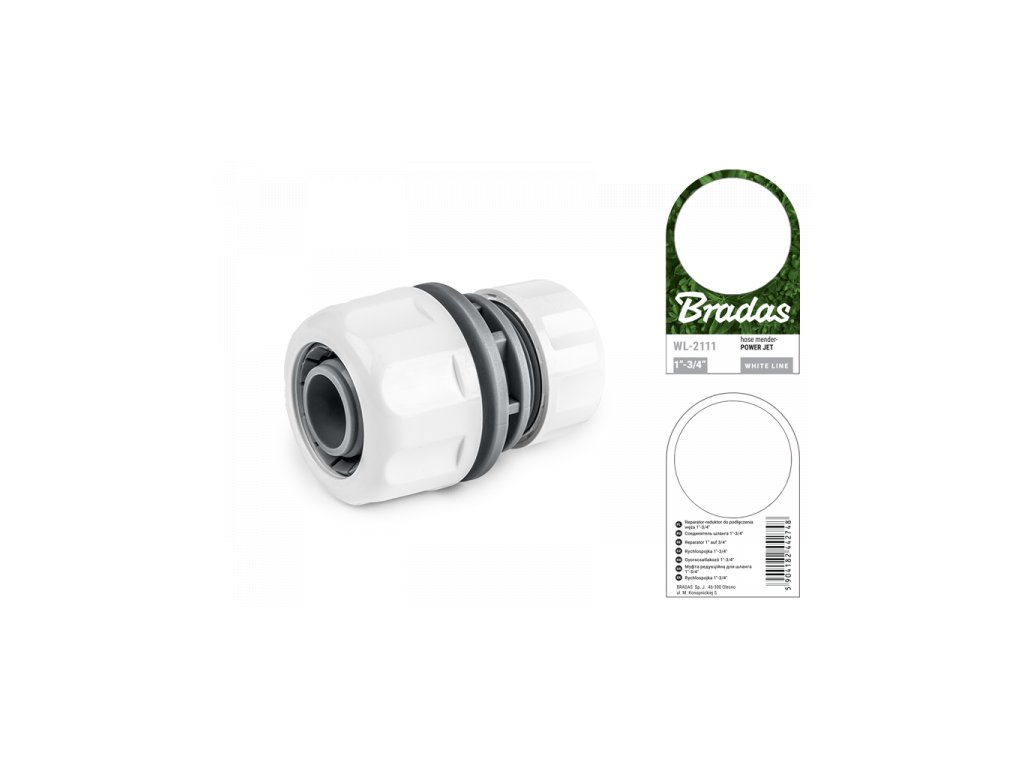 Bílá přípojka BRADAS WHITE LINE je určena pro hadice s vnitřním průměrem 1" a 3/4". Je vyrobena z velmi kvalitního PVC a zároveň je opatřena profilovanými zuby, které zajišťují pevnou montáž tenkostěnných hadic. Lze ji použít pro prodloužení hadice nebo pro její opravu v případě mechanického poškození. Tato přípojka je vhodná pro profesionální použití v závlahových a kropicích systémech.