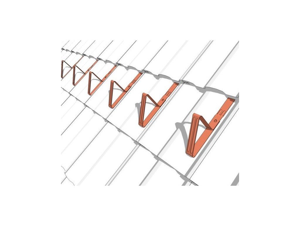 Protisněhový hák klasický pro tašky zabraňuje sesuvu sněhové vrstvy z šikmých střech cihlová barvy. Proti sněhové háky, zabránění skluzu sněhu ze střechy, hodí se pro VŠECHNY typy BETONOVÉ KRYTINY. Sněhové zábrany jsou nedílnou součástí zejména šikmých střech.