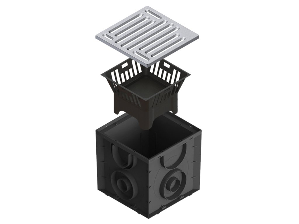 Revizní šachta VODALAND EASY 250 x 250 mm plastová s pozinkovaným roštem A15 50-160 mm černá