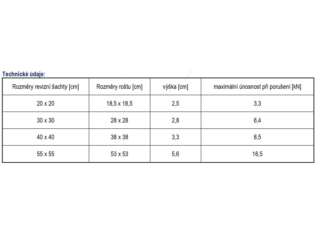 | Typ: | Rošty, Příslušenství pro dvorní revizní šachty |