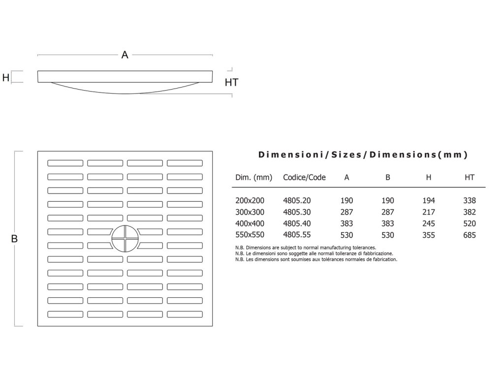 - jmenovitý rozměr roštu: 400 x 400 mm