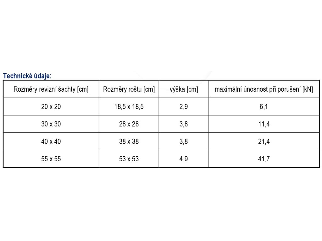 | Typ: | Rošty, Příslušenství pro dvorní revizní šachty |