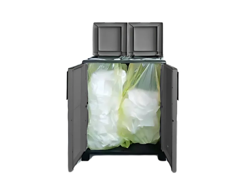 Třídění odpadu může být praktické, čisté a vizuálně vkusné – skříň Linea Free je toho důkazem. Nabízí dvě dvířka a dvě samostatná víka, která umožňují snadné rozdělení papíru, plastu, skla či jiného odpadu. Díky chytrému vertikálnímu designu a kompaktním rozměrům se perfektně hodí do kuchyně, technické místnosti, kanceláře nebo na balkon. Skříň je vyrobena z odolného a omyvatelného plastu, který odolává vlhkosti i běžnému znečištění. Zároveň je velmi lehká, stabilní a snadno přemístitelná.