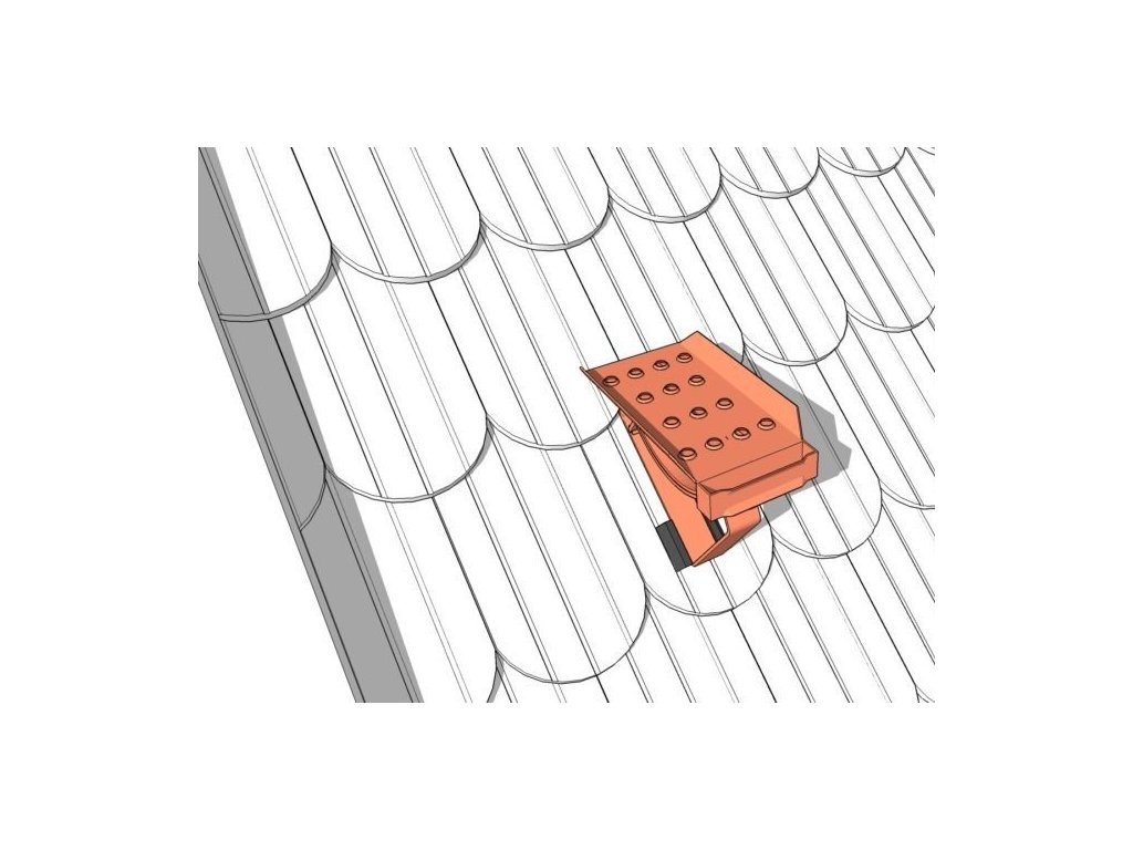 Střešní nášlap WABIS UNI, jinak zvaný nášlap tašky, je vyrobený z kvalitní pozinkované oceli a slouží pro rychlý a bezpečný pohyb na šikmých střechách. Obsahuje kolébkovitý regulovatelný držák včetně montážních šroubů a usnadňuje pohyb a práci na střeše. Poskytuje protiskluzový povrch, výbornou antikorozní ochranu, odolnost proti povětrnostním vlivům, mrazu i stárnutí a také rychlou a snadnou montáž s pomocí přímo určených systémových držáků, které jsou přizpůsobené k instalaci na různé druhy střešních krytin. Tento typ nášlapu lze univerzálně použít pro všechny druhy střešních krytin.