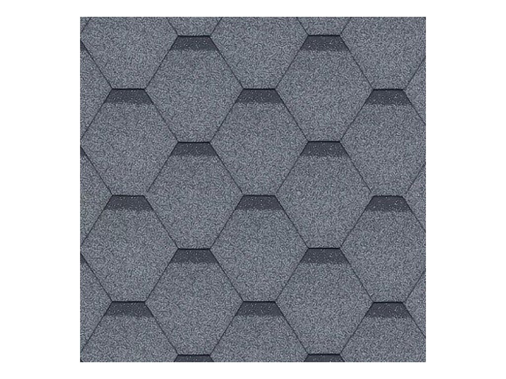 Bitumenové střešní šindele HEXAGONAL z organických vláken sycených bitumenem v šedé barvě jsou určeny na střechy od sklonu 12°. Spodní strana je opatřena celoplošnou samolepící vrstvou - před použitím je nutné strhnout pásku! Flexibilní střešní tašky SHINGLAS – dokonalá střešní krytina umožňující realizaci všech Vašich architektonických nápadů a snů. Vila, rodinný dům za městem nebo letní chata - šindel zdůrazní individualitu Vašeho domu a jeho harmonii s okolní krajinou. Střešní krytina neboli bitumenová střešní krytina jsou šindele řezané do určitých tvarů. Jednotlivé šindele jsou vyrobeny na bázi skelného vlákna, na nějž se z obou stran nanáší speciální bitumenová směs. Právě díky němu je dosahováno vysoké estetické kvality flexibilních střešních tašek. Z horní nebo přední strany mají šindele barevný posyp.