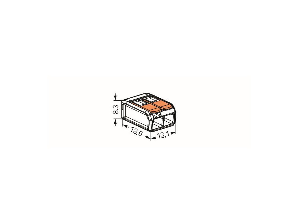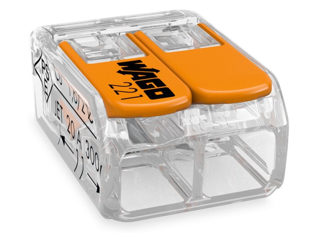 Krabicová bezšroubová spojovací svorka WAGO COMPACT je určená pro instalaci všech druhů vodičů o průřezu 0,14 - 4 mm². Obsahuje 2 svěrná místa a páčku, pomocí nichž lze připojit jemně laněné vodiče o průřezu 0,14 - 4 mm² a plné i vícedrátové vodiče o průřezu 0,2 - 4 mm². Díky částečně průhlednému provedení lze kontrolovat spoje a polohu vodiče. Tato svorka je konstruována pro jmenovité napětí 450 V a jmenovitý proud 32 A s maximální okolní teplotou pro provoz do +85 °C.